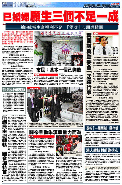 ¡@½Õ¬dµo²{¡A63.5%°ü¤k§Æ±æ¦³¨â¦W¤l¤k¡A23.7%«h¥u·Q¦³¤@¦W¤l¤k¡A§Æ±æ¦³¤T¦W¤l¤k©Î¦h¹L¤T¦W¥u¦³7.3%¡C¹ï©ó©xû©IÆ~¥Í¤T¦W¤l¤k¡A64.7%°ü¤kªí¥Ü¤£¦P·N¡A«ü¾i¨|¤l¤k¶·¦Ò¼{ª÷¿úªá¶O(81.4%)¡B¤l¤k±Ð¨|(79.8%)¡B¤l¤k¦¨ªø°ö¾i(75.6%)¡B¥Í¬¡·ÓÅU(72.8%)¡A¥H¤Î©~¦íÀô¹Ò°ÝÃD(65.1%)¡C