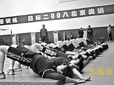 由主教練陳忠和帶領的新一屆中國女排隊員在郴州進行首次集訓,目標直指2008年北京奧運會。 (中新社)
