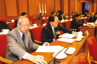 ¡@¤Q©¡¥þ°ê¤H¤j¤T¦¸·|ij¥D®u¹Î²Ä¤G¦¸·|ij7¤é¦b¥_¨Ê¤H¥Á¤j·|°óÁ|¦æ¡A»´ä¥Nªí°KªZ¡]¥ª¡^»P¿Dªù¥Nªí¶P¤@¸Û¦b·|¤W«öªí¨M¾¹³q¹Lijµ{¡C (¤¤·sªÀ)