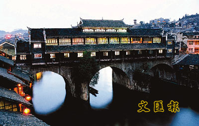 鳳凰古城有一道沱江,有一座城牆,還有幾條風格不同的橋。而民居也有如宮殿般的飛檐翹角,雖不是紅牆綠瓦,但也錯落有致,令人發思古之幽情。
