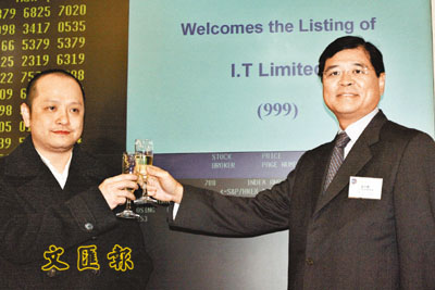 沈嘉偉(左)的I.T.服裝店早前成功上市,躋身上市公司主席之列。 (張偉民 攝)