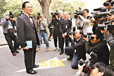 曾蔭權停下腳步讓記者拍照,但不回答敏感問題。 (路透社)