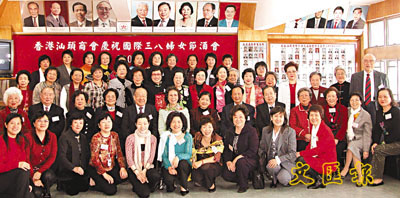 汕頭商會賓主歡聚一堂慶祝國際婦女節。 (鄭群 攝)