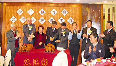 沙田體育會舉行新春團拜,嘉賓切金豬慶賀。