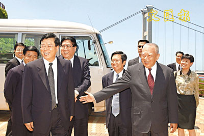 去年八月,董建華、高祀仁等陪同張德江一行參觀青馬大橋。