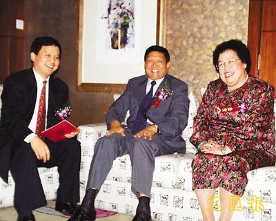 北京市領導劉淇(中)高度重視陳麗華(右一)「金寶街」的投資項目,左一為香港富華國際集團總裁趙勇。