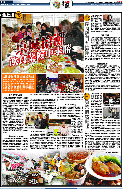 隨著中國經濟發展迅猛,內地飲食業近年亦急劇增長。據業內人士指出,飲食業的增長率要較其他行業高出逾10%,可見內地正迎來一個飲食業升溫的大時代,市場潛力巨大,前景非常廣闊。隨著北京奧運踏入倒數周期,港人進軍京城飲食業更是近年的一大趨勢,但在京的資深業內人士對此間市場是審慎樂觀,寄語愛跟風的港人不要盲目抱著「搵快錢」的心態投資,而應摸準北京消費者的潮流脈搏。