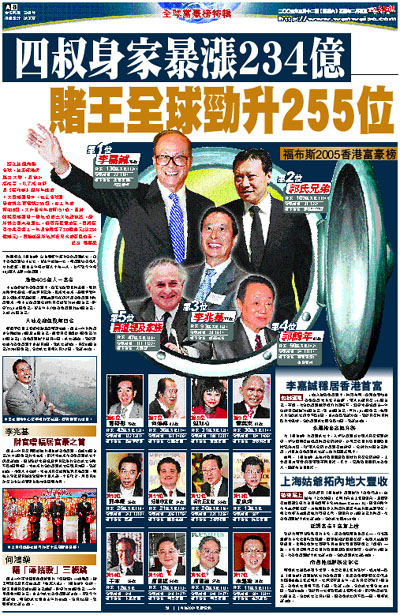 [2005-03-12] 四叔身家暴漲234億 賭王全球勁升255位 放大圖片