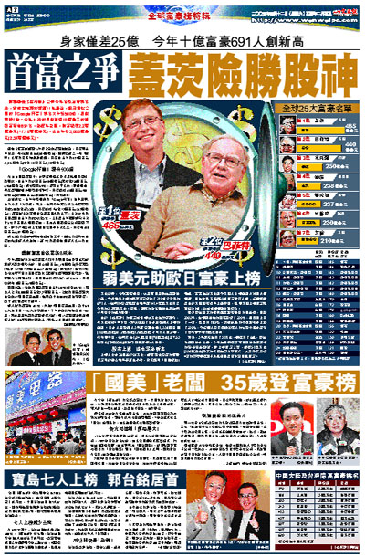 [2005-03-12] 首富之爭 蓋茨險勝股神 放大圖片