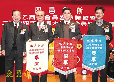 楊德理事長(左二)獲徵求會員冠軍錦旗。(鄭群 攝)