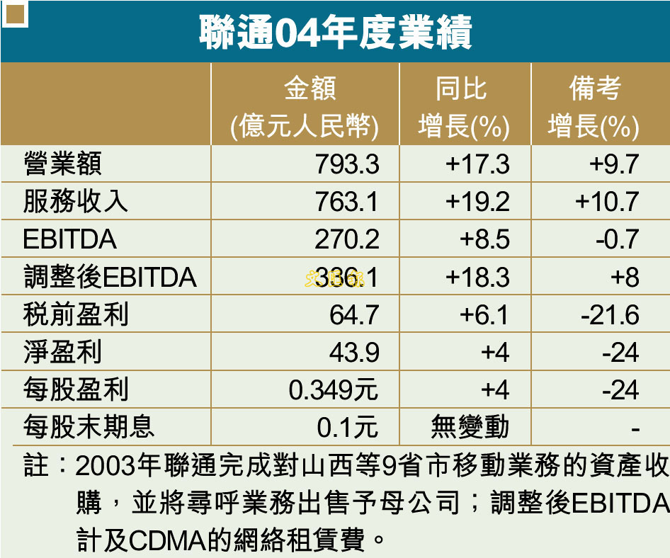 聯通04年度業績 (圖)