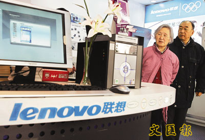 美投資公司擬入股聯想,為到美國上市鋪路。圖為聯想在北京奧運會展場推介個人電腦。