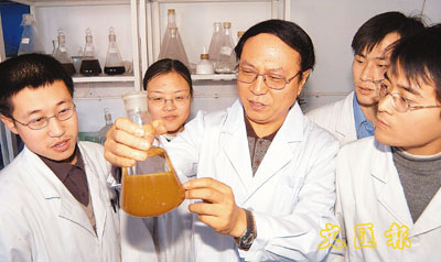 全國政協委員、河北以嶺醫藥研究院吳以嶺教授(中)和他的研究團隊認為,抵禦禽流感,中藥大有作為。 (以嶺宣傳部供圖)