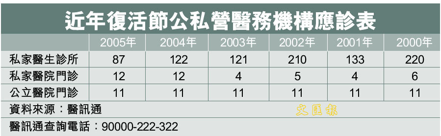 [2005-03-26] 近年復活節公私營醫務機構應診表