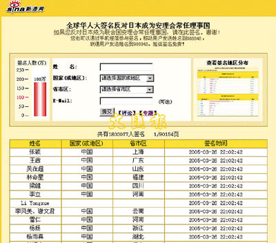 新浪網的簽名一天內增加一百多萬。