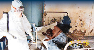 1976年,伊波拉病毒首次在非洲的蘇丹及扎伊爾被發現,死亡率達90%。圖為感染伊波拉病毒的病人。 (網上圖片)