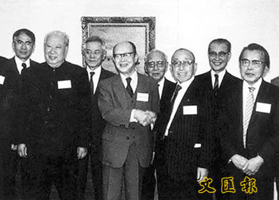 周有光(左四)於1980年訪問日本時的情形。 (網上圖片)