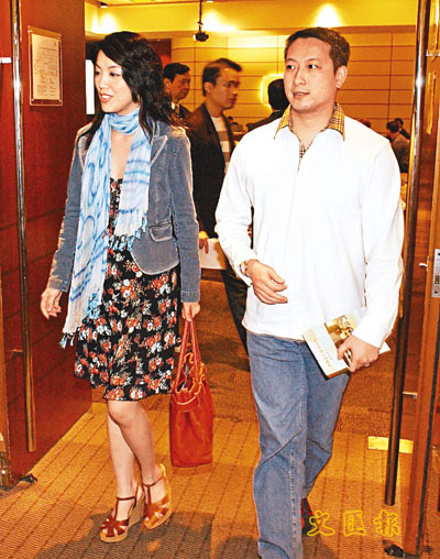 陳芷菁與夫婿投得含有一家三口英文名縮寫的「AC 866」車牌後開心不已。(李志樑 攝)