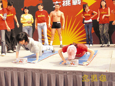 無線藝人大玩掌上壓,歐倩怡更險走光。