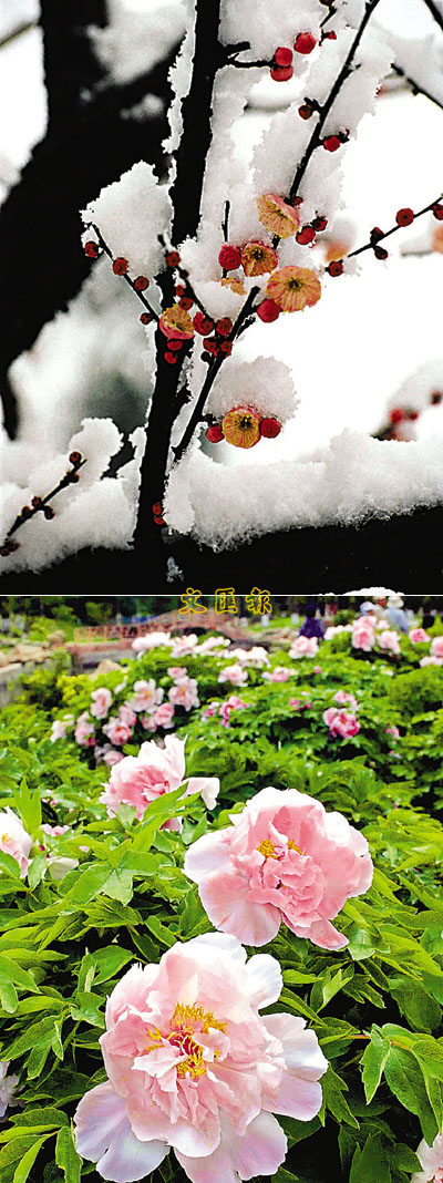 傲寒的梅花與富麗的牡丹,各有動人心魄之美。(www.xinhua.com)