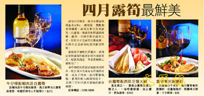 最近華岸酒吧扒房推出一系列由新鮮露筍所配搭而成的清新菜式,配搭具創意,單看賣相都已被吸引了!