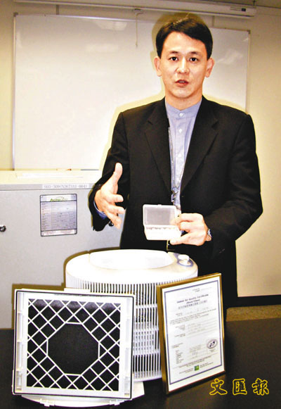 何世傑稱,用火山石作過濾的空氣清新機,相當有效。(甄健輝 攝)