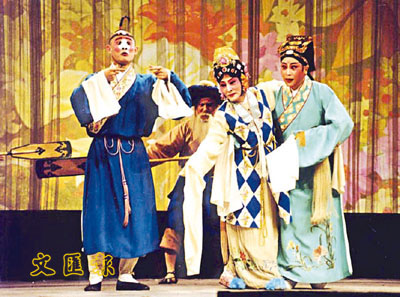 崑曲《玉簪記——秋江》中的一幕,圖為潘必正與陳妙嫦。