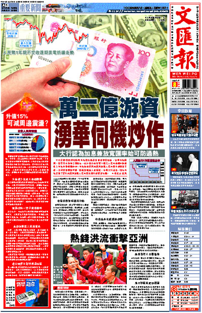雷曼兄弟估計,過去兩年從四方八面湧入內地的國際游資熱錢,累計高達1,450億美元,折算接近1.2萬億元人民幣。這些海外游資正在內地市場伺機炒作,部分流入了如上海等大城市的地產市場。內地沿用多年的資本管制、控制銀行貸款力度等指導性宏調措施,被證明愈來愈難駕馭急速開放的金融市場。惟有透過市場機制如加息措施,才有望達到冷卻投資熱度的效果。