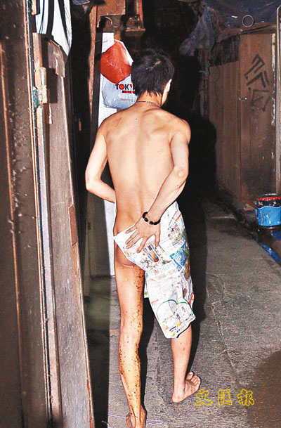 裸跑青年大腿沾滿糞便。
