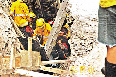 [2005-04-08] 泥頭車剷工地 司機困深坑 放大圖片