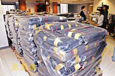海關於行動中,檢獲大批冒牌意大利名貴布匹。