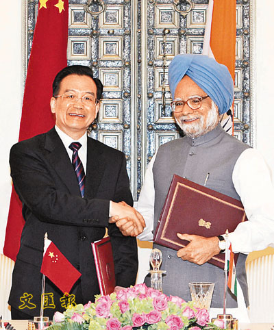 溫家寶今天表示,這次對印度的訪問是一次具有重要意義的訪問,取得了五個方面的成果: