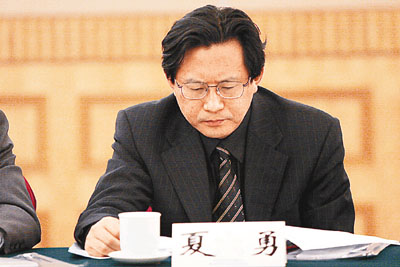 會議進行不到一半,在幾個嘉賓發言之後,媒體席忽然一陣騷動,魚貫離席出門,令不少與會者莫名其妙。原來是夏勇匆匆走向門外,初時本報記者還以為他出去一下即刻便回,但記者猛然發現他是夾著文件包出去的,像是「一走不回頭」,於是連忙追上,表示可否跟記者聊一聊。戴寬邊淺色眼鏡、身著深色淺豎條西服的夏勇說,「我從來不接受採訪。」然後向記者報以微笑,急匆匆地遠去。