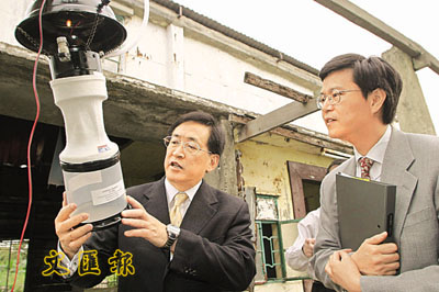 周一嶽手上的捕蚊器是食環署滅蚊的法寶之一,周局長對此工具也感興趣。
