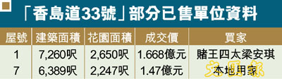 「香島道33號」解封 呎價堅挺2.6萬 (圖)