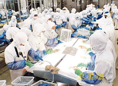 日本不少企業在華設廠,有部分日本人認為會使日本國內「產業空洞化」。圖為一家日資企業在煙台開設的食品廠。 (資料圖片)