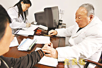 中醫學對病人戒口有獨到見解,認為癌病患者不宜過分吸取營養,只會弄巧反拙。圖為杭州一名國家級名中醫為病人把脈診症。(資料圖片)