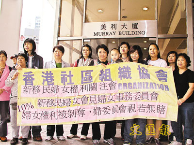 香港社區組織協會與新移民互助社代表昨向婦女事務委員會反映新移民婦女的困難。(羅敬文攝)