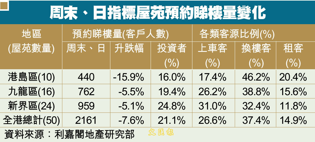 周末、日指標屋苑預約睇樓量變化 (圖)