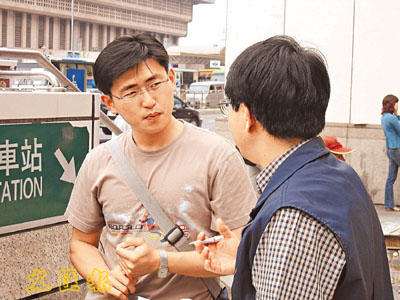 台北市民、從事財經業的盧先生昨日接受本報記者街頭訪問時表示,連戰訪問大陸,主要要看談什麼問題,如果是正面的議題就OK。(本報台北傳真)