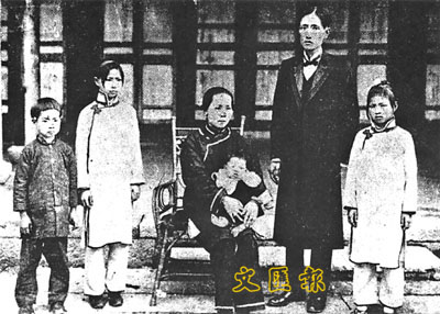 連橫(連戰的祖父)於民國元年赴大陸前與全家合影,右起:次女春台、雅堂先生、夫人及三女秋漢、長女夏甸、子震東(連戰的父親)。(鳳凰周刊)