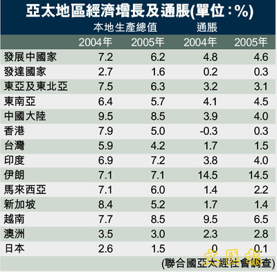 [2005-04-26] 亞太地區經濟增長及通脹(單位:%)