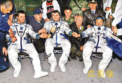 國際太空站3名太空人周一乘俄羅斯「聯盟TMA-5」太空船平安降落在哈薩克斯坦境內預定地點。(左起)意大利太空人維托里、俄羅斯太空人沙里波夫及美國華裔太空人焦立中。沙里波夫和焦立中是太空站第十長期考察組成員,共在空間站工作了193天。他們進行了兩次太空行走,並進行了60多項科學實驗。維托里是對空間站進行短期訪問的。 (綜合外電消息)