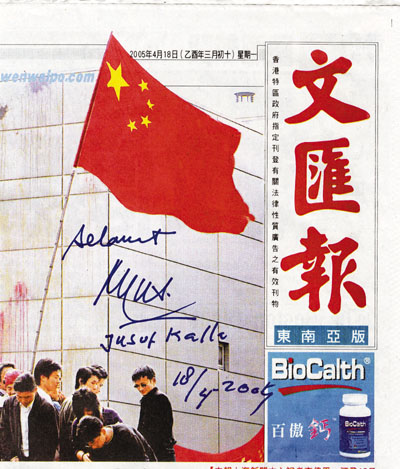 印尼副總統卡拉在接見本報社長張國良一行時,對香港文匯報的東南亞版在印尼發行了三年表示祝賀,並送上以下兩句寄語:「你們要讓世界了解印尼、讓印尼了解世界!」