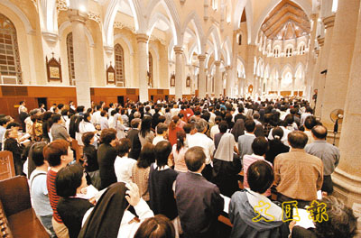 【本報訊】(記者 陳朗昇)天主教香港教區昨晚為新任教宗本篤十六世舉行就職祈福彌撒,榮休台北總教區總主教狄剛亦有出席,和香港教區主教陳日君一同主持彌撒。