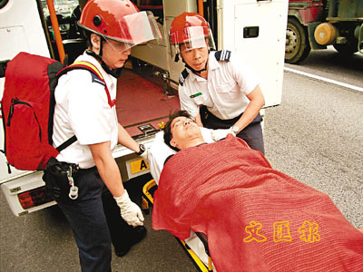 屯門公路車禍的其中一名傷者送院。