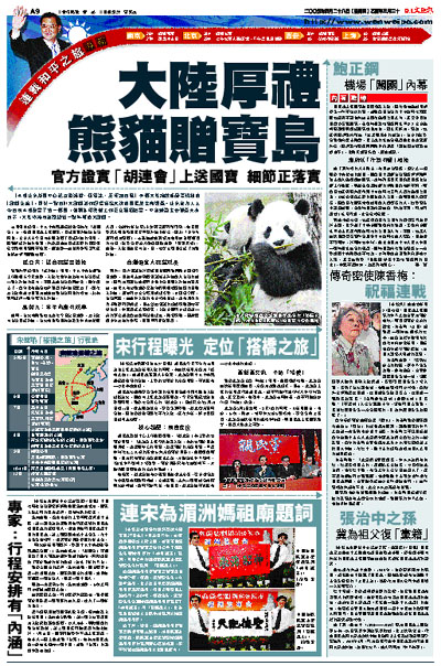 [2005-04-28] 連戰和平之旅專輯.大陸厚禮熊貓贈寶島 放大圖片