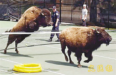 在美國馬里蘭州派克斯維爾市,一批水牛周二成功從飼養牠們的農場逃脫,以致10隻水牛好像變成甩繩馬騮一樣到處流浪,不但阻礙交通正常運作,還對附近居民構成安全威脅。後來,政府官員費盡思量才能把水牛引入一個網球場,結束混亂局面。