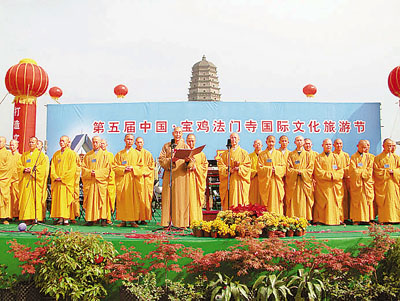 據寶雞市市長姚引良介紹,經過10多年的開發和建設,如今的法門寺已成為聞名海內外的佛教聖地。此次開幕儀式上,還舉行了「佛光音樂會」,法門寺眾僧為遊客吟頌《三寶歌》尤引人入勝。
