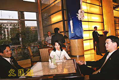 連戰的子女、女婿正商量逛街。 (本報北京傳真)
